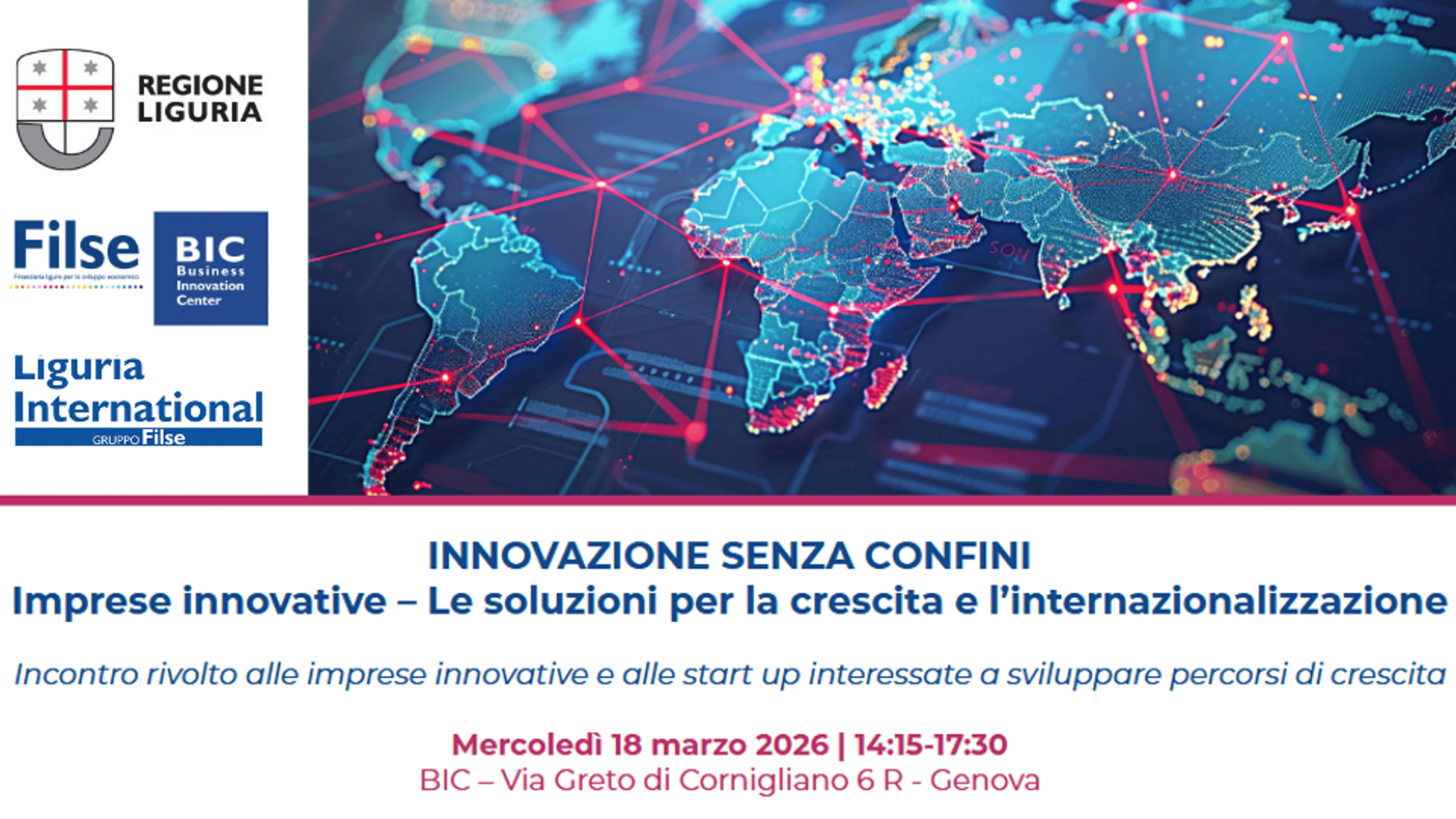 Regione Liguria organizza “Innovazione senza confini – Le soluzioni per la crescita e l’internazionalizzazione”.