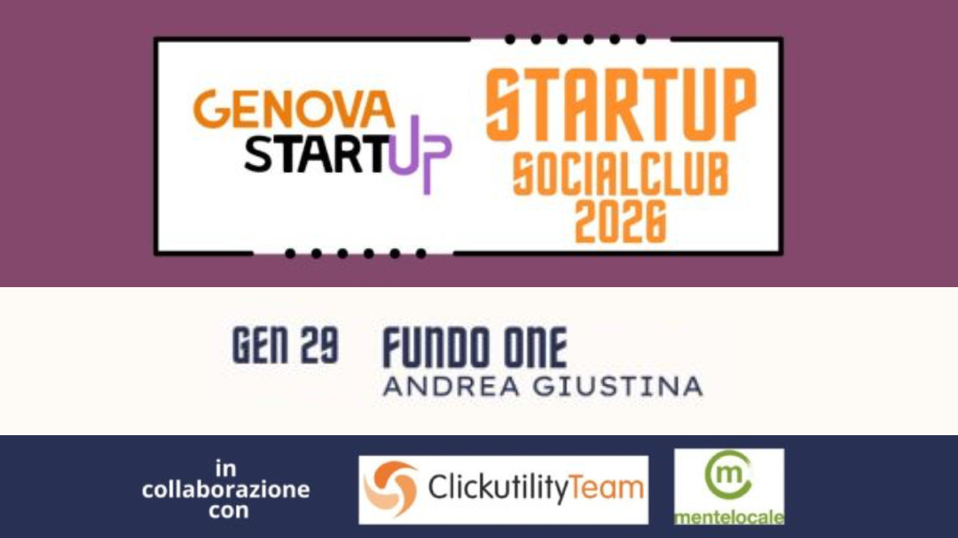 Il 26.1.2026 alle ore 18 continuano gli appuntamenti di Startup Social Club, organizzato da Fondazione Genova Startup presso il MenteLocale Bistrot a Palazzo Ducale.